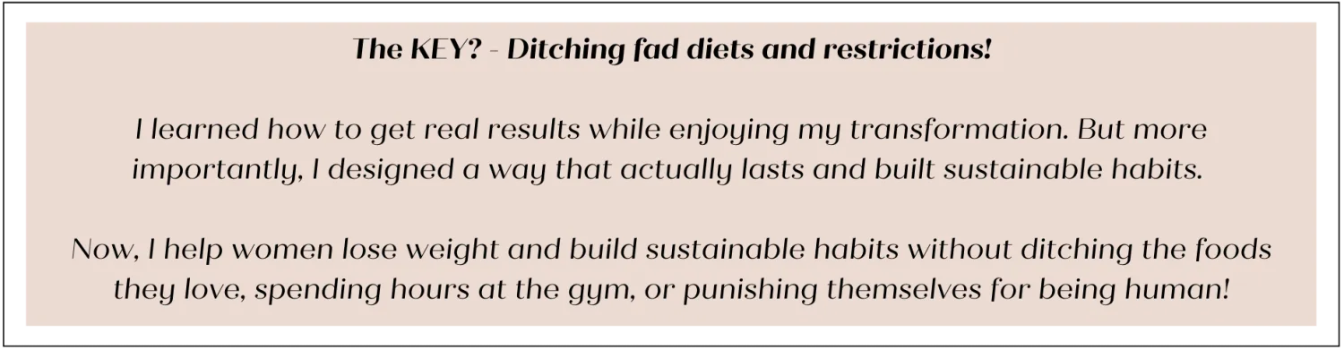 l've learned how to get results (and enjoy the process!) but more importantly be able to confidently sustain them for a lifetime, without having to give up any foods you love, spend all your time at the gym or sacrifice anything fun in your life.