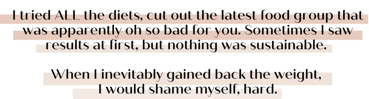 I empower my clients to release the pressures of yo-yo dieting and create sustainable habits to last them a lifetime.